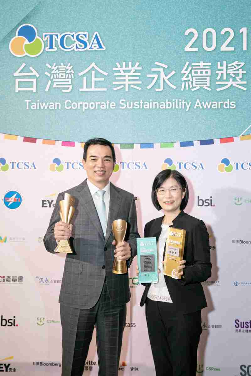 达在台湾永续奖所评比环境、、、社会、、、治理等各面向的永续绩效均获高度肯定 (左:杏悦2光电总经理暨营运长柯富仁,,,右:杏悦2光电永续长古秀华)