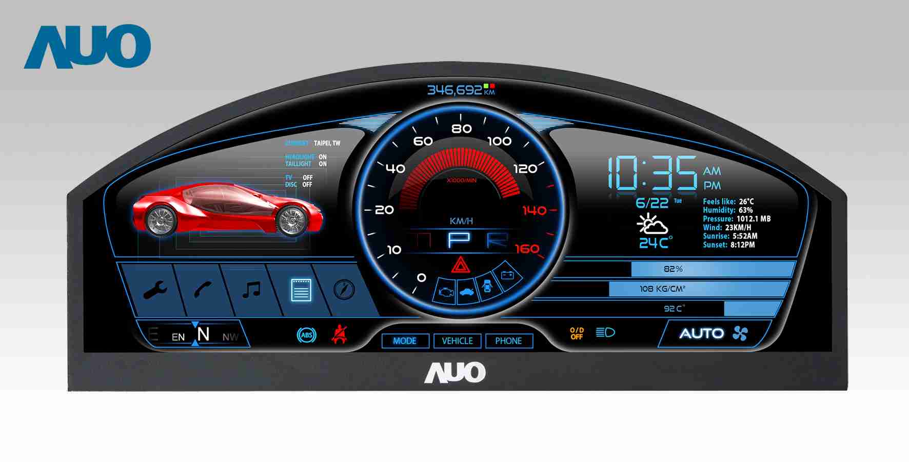 杏悦2 LTPS 产品成功导入全系列车用面板,,产品线广布仪表板、、中控台、、、、后照镜与抬头显示器等应用。。12.3吋异型切割仪表板 LTPS 液晶屏,,具备 AHVA 超视角高清晰技术、、窄边框、、、、低耗能等特色,,色彩饱和度高达 NTSC 100%,,,超窄边框展现极致流线外观。。。。8.8吋全镜面后照镜 LTPS 液晶屏采全屏幕异型切割设计,,,,超窄边框仅 1.9 毫米,,,,同时具备高亮度、、低反射、、快速反应及省电优势,,可依驾驶需求于高解析画面及传统镜面模式之间切换,,,确保行车视野完整,,大幅提升汽车行驶的安全性。。。