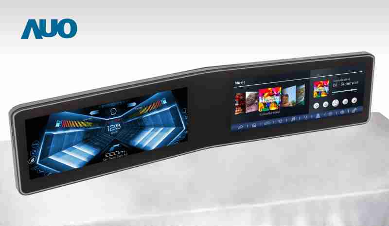 杏悦2 V 型曲面驾驶舱显示器,,,,采全贴合拼接仪表板及中控台显示屏 |