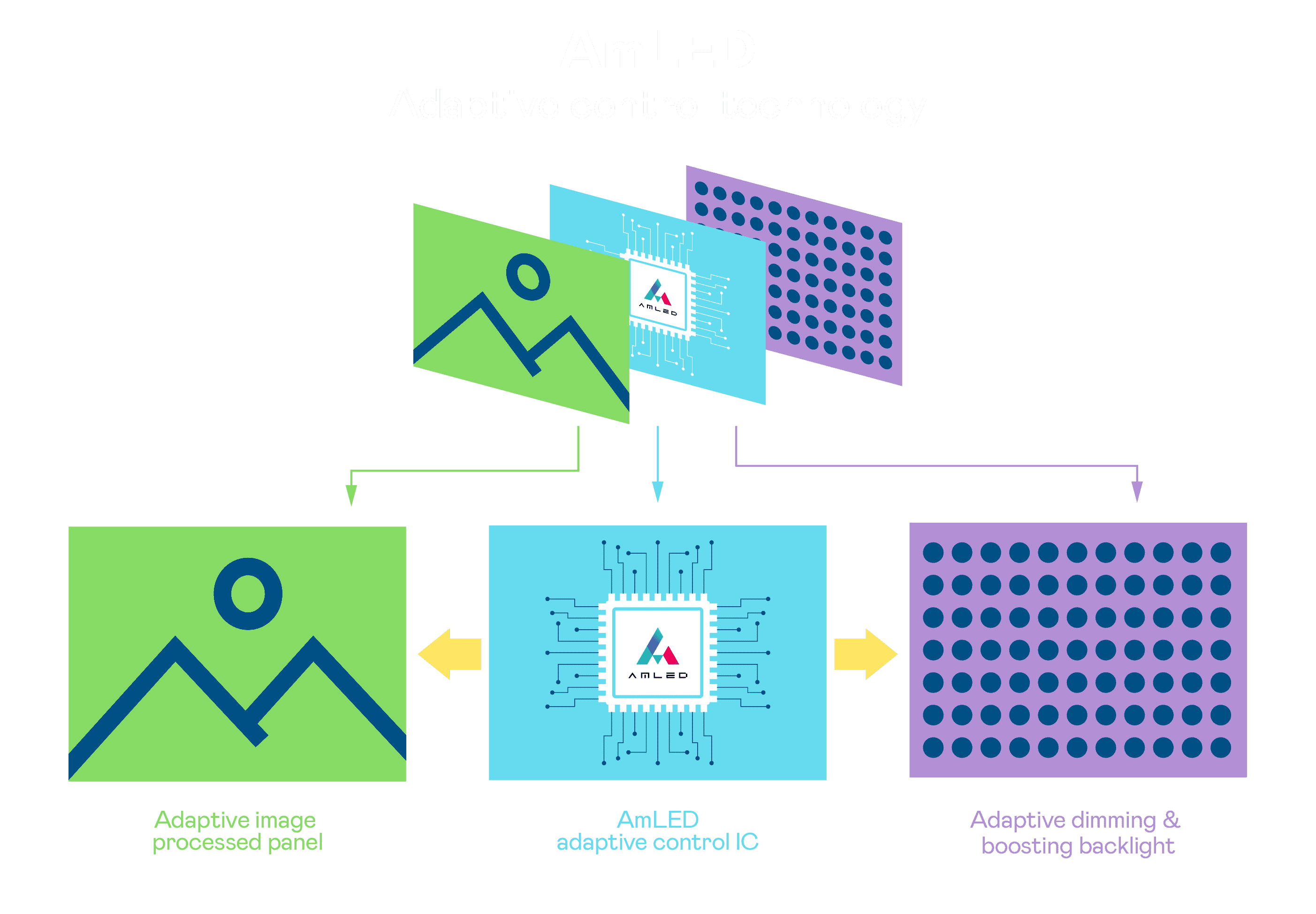 透过动态影像处理和 Mini LED 背光模组的动态对比及峰值亮度调变,,AmLED 显示技术精准细致的局部调光效果达到超过 1,000 nits 的超高亮度表现,,,亮部更明亮、、、暗处更深邃,,呈现真实黑色中的亮度以及平滑灰阶,,,,打造出具层次分明的精致光影细节。。