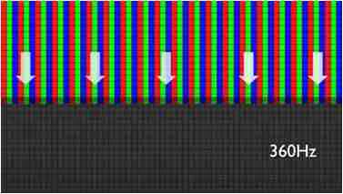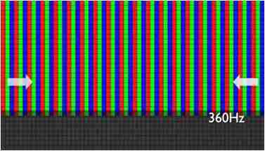 传统液晶驱动是从左到右单向进行,,,,在画面更新速度愈来越愈快的情况下,,,位于驱动线路末端的右下角区域,,,,画素的闸极来不及在短时间内获得足够电压,,,,无法显示出正确的颜色资讯。。。